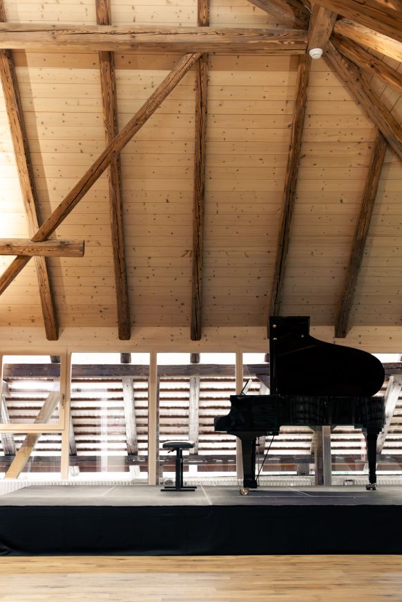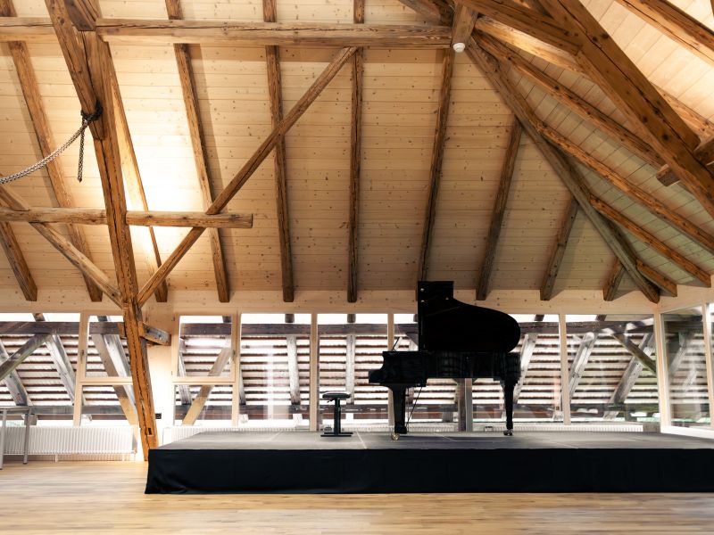 Zur Infrastruktur gehören Stühle und Tische für 60 und mehr Personen, eine Küchenkombination sowie medientechnische Geräte wie Audioanlage, CD-Player und Beamer, ein Flügel und eine 18 m² grosse Bühne.